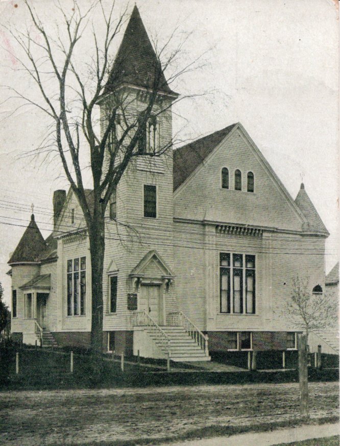 In December 1852, twenty-five residents of the village, who found the trip to Norway Center over poor roads to be burdensome, held a meeting and voted to form the “Norway Village Congregational Church.” An ecclesiastical council was held in January 1853 to examine the credentials and the Christian character of the organizers. Delegates from area churches voted to establish the Norway Village Church. The building of a former Methodist church was purchased near where the entrance to the Ripley Building is now located. In 1863 a tower and a bell were added to the building. In December 1854, Rev. Asa T. Loring was called to be the first Pastor.